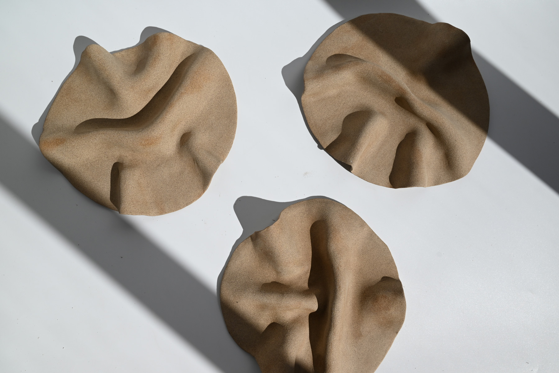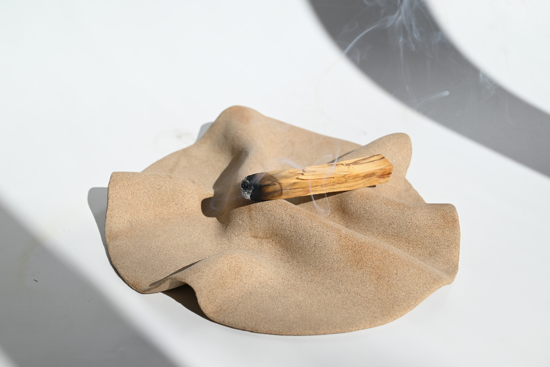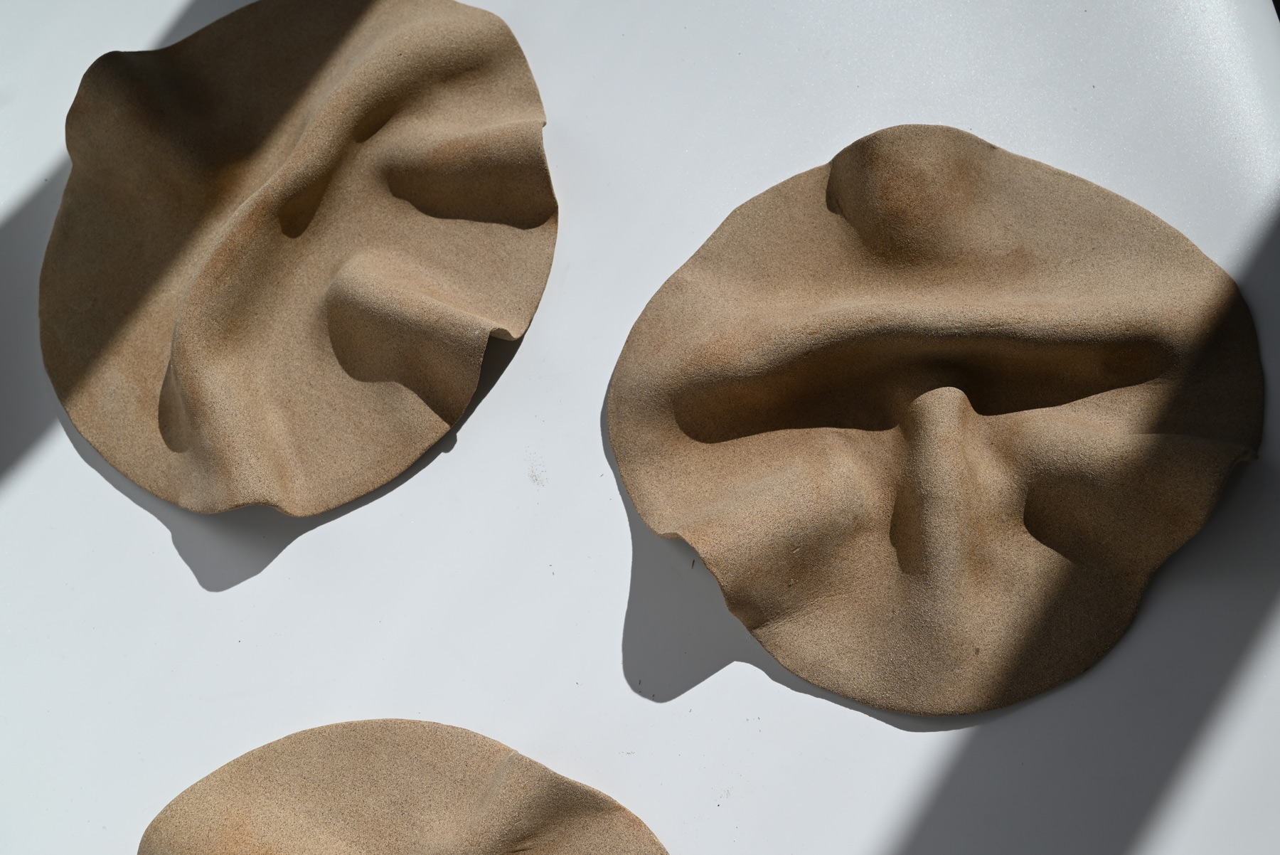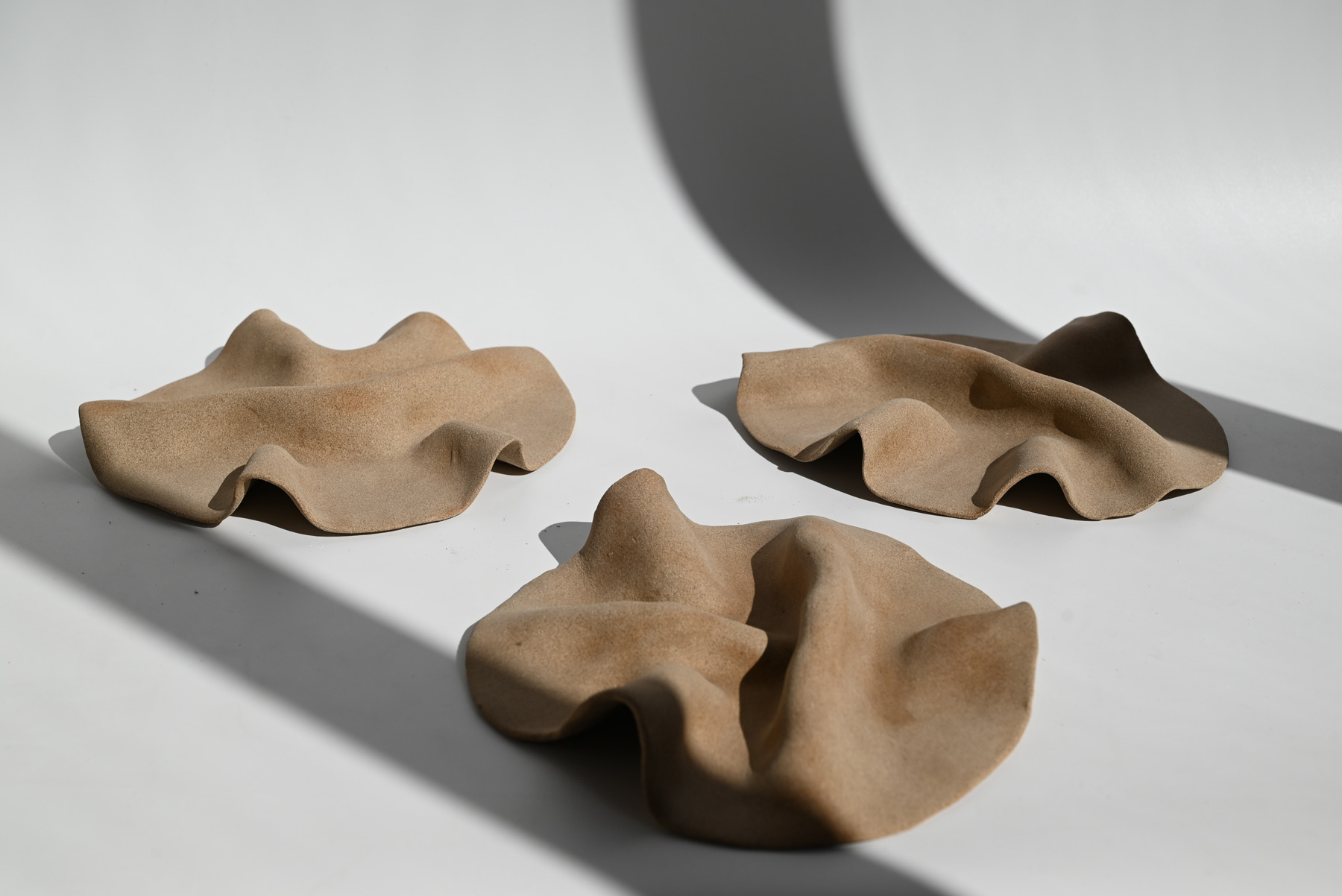A platter shaped by a thin sheet of clay, soft and fluid like folded fabric.