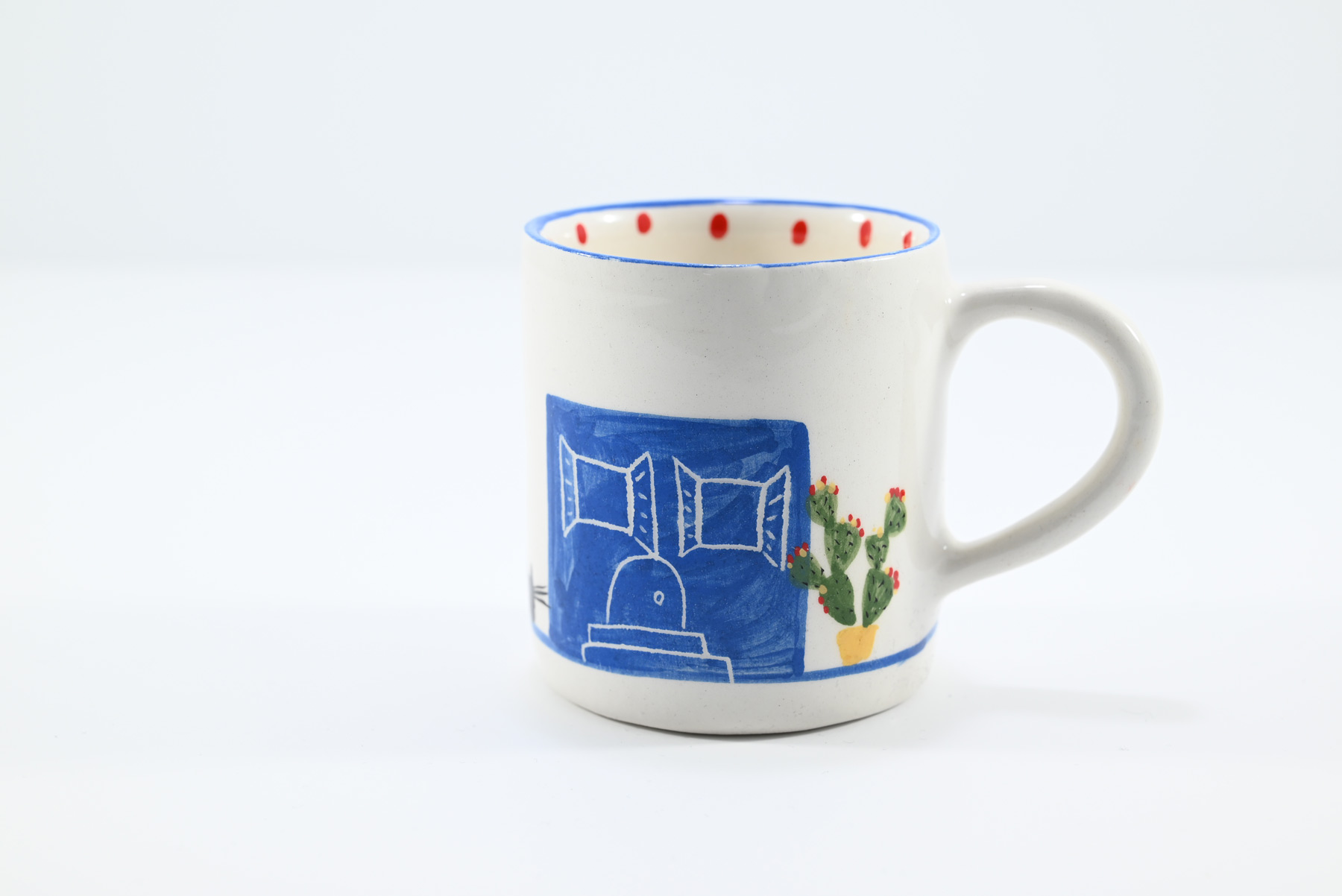 Attractive handmade ceramic cups created on the potter’s wheel. It is entirely hand- painted with free brushstrokes, inspired by the Greek summer.