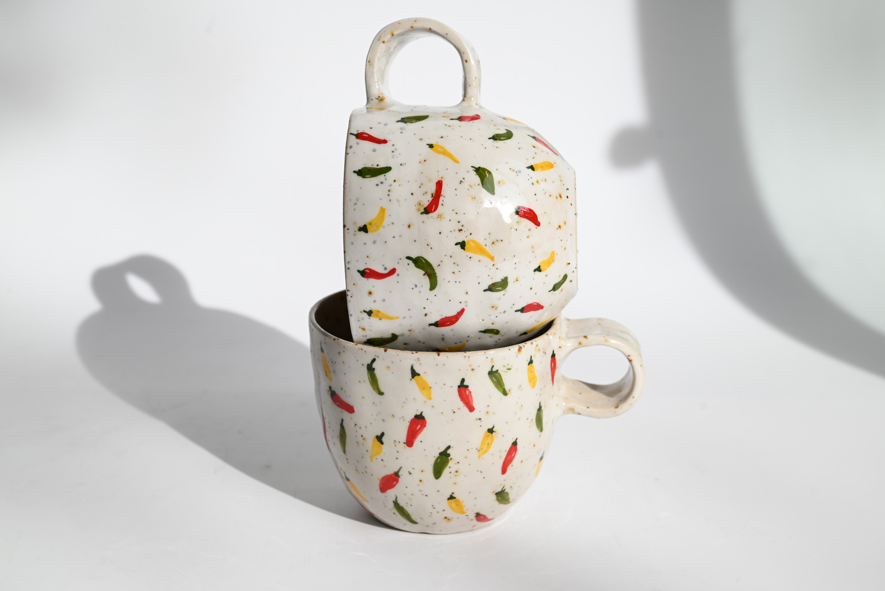 Αυτή η κούπα, φτιαγμένη εξ ολοκλήρου στο χέρι με την τεχνική του τσιμπήματος και διακοσμημένη με αέρινες, ελεύθερες πινελιές, φέρει τον χαρακτήρα του μοναδικού. Ψημένη σε υψηλές θερμοκρασίες, είναι ανθεκτική και ιδανική για καθημερινή χρήση, χωρίς να χάνει τίποτα από τη χειροποίητη γοητεία της.
