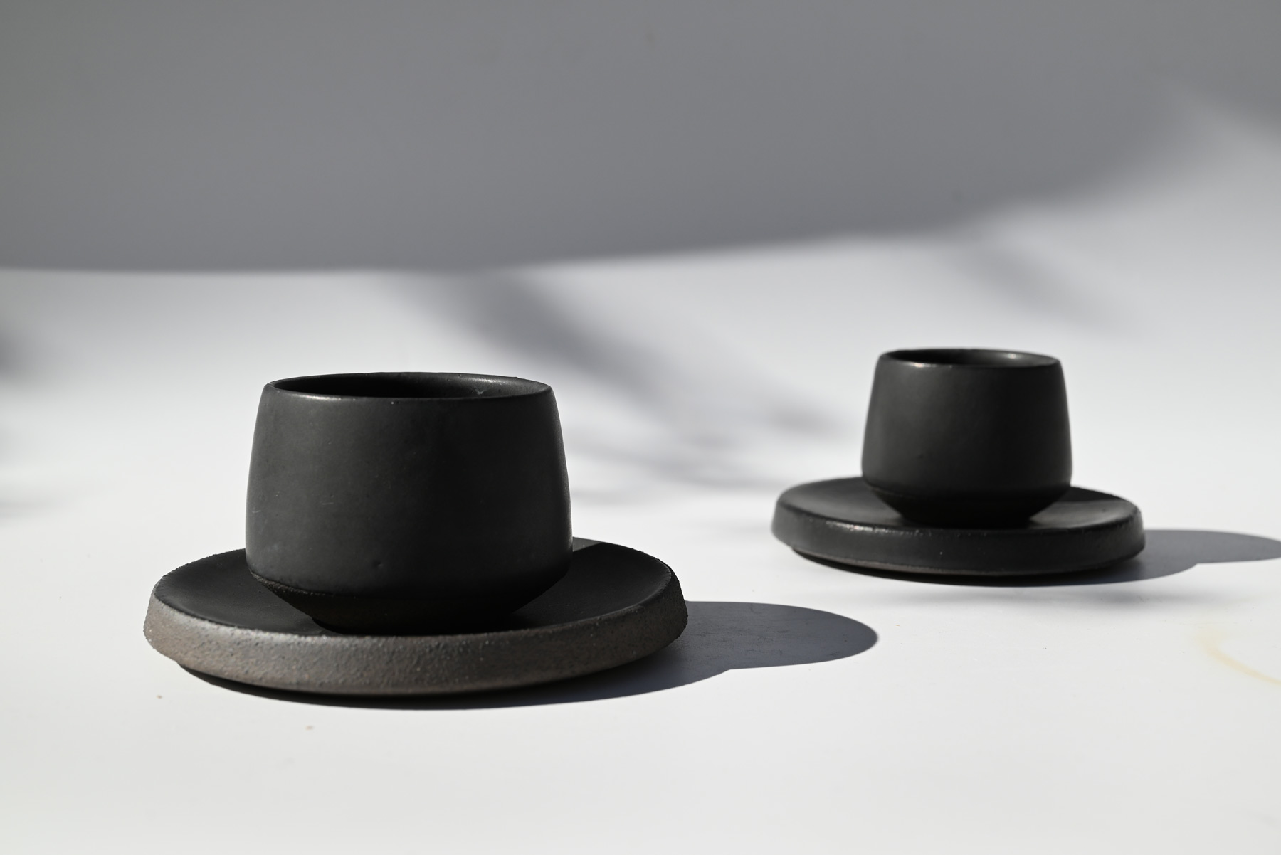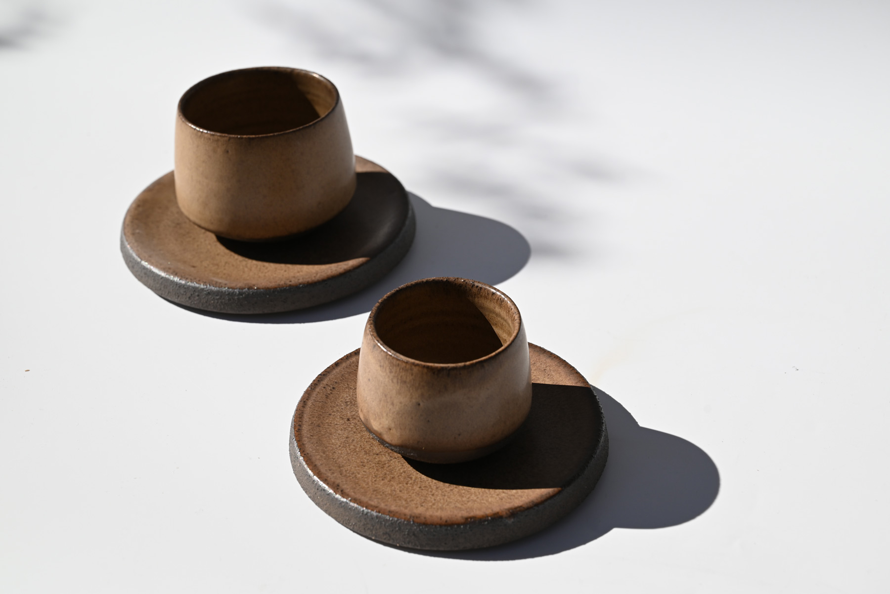 | Ένα σετ από χειροποίητες κούπες με το πιατάκι τους,σε δύο μεγέθη . |