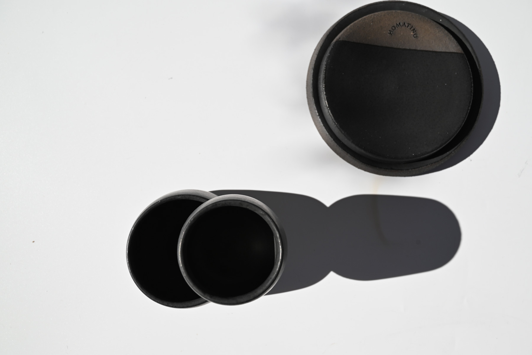Μια κούπα κατασκευασμένη από πηλό, στο χέρι και σε δύο μεγέθη.